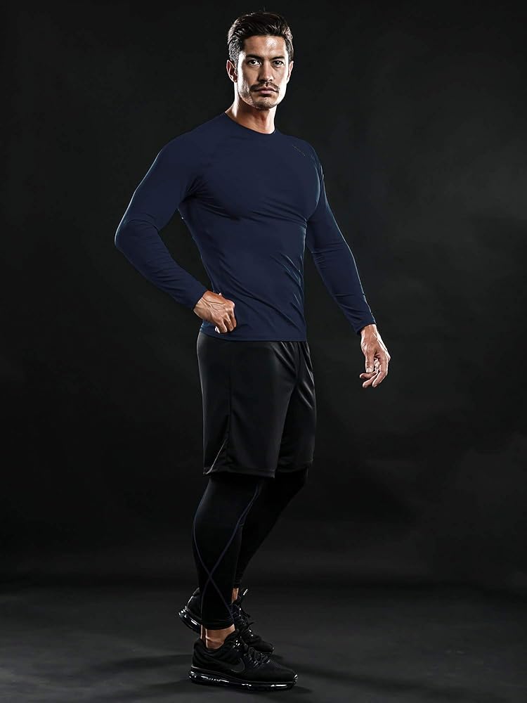 Cabeen Men’s Compression Mask Shirt Long Sleeve Gym Quick Dry Thermal Base Layer Top For Sports Running Fitness Workout